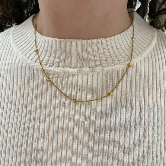 - Simple Gold Chain Necklace with Hearts Worked into the Chain