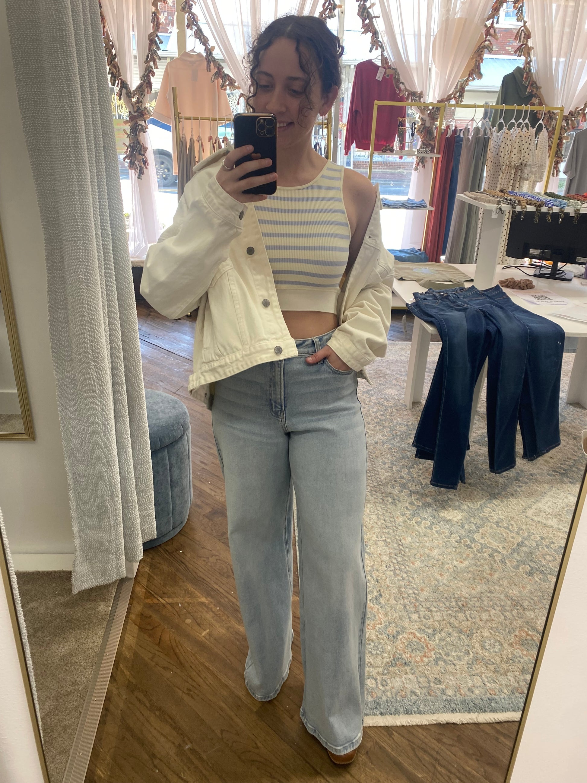 Sara-Quinn Striped Tank - Cream Pale Blue