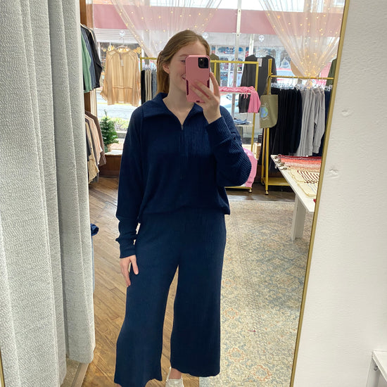 Cole Rib Knit Half Zip Pullover - True Navy