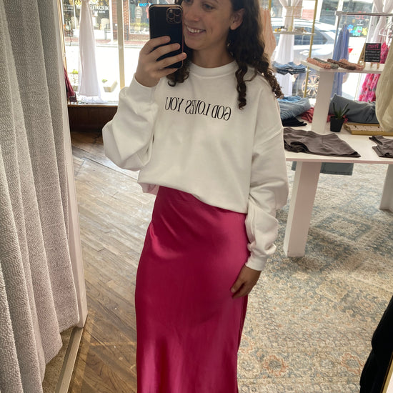 Audrey Satin Midi Skirt - Hot Pink