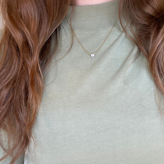 - Gold Chain Necklace with a Dainty Crystal Pendant