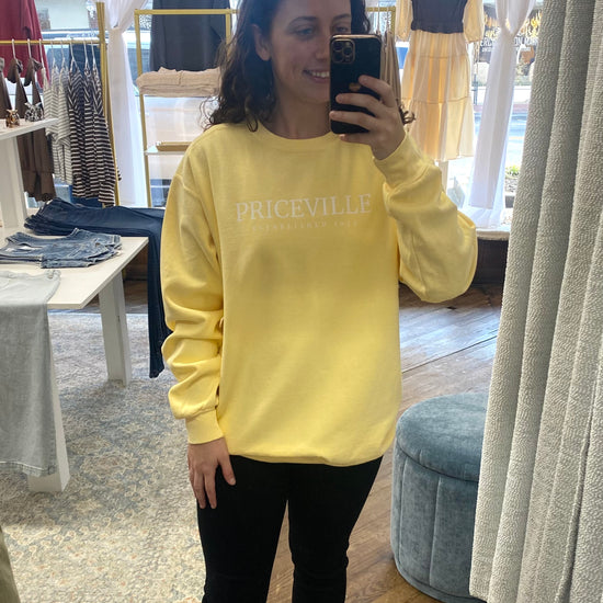 - Front of Sweatshirt: Design Reads, "PRICEVILLE ESTABLISHED 1975"
