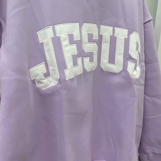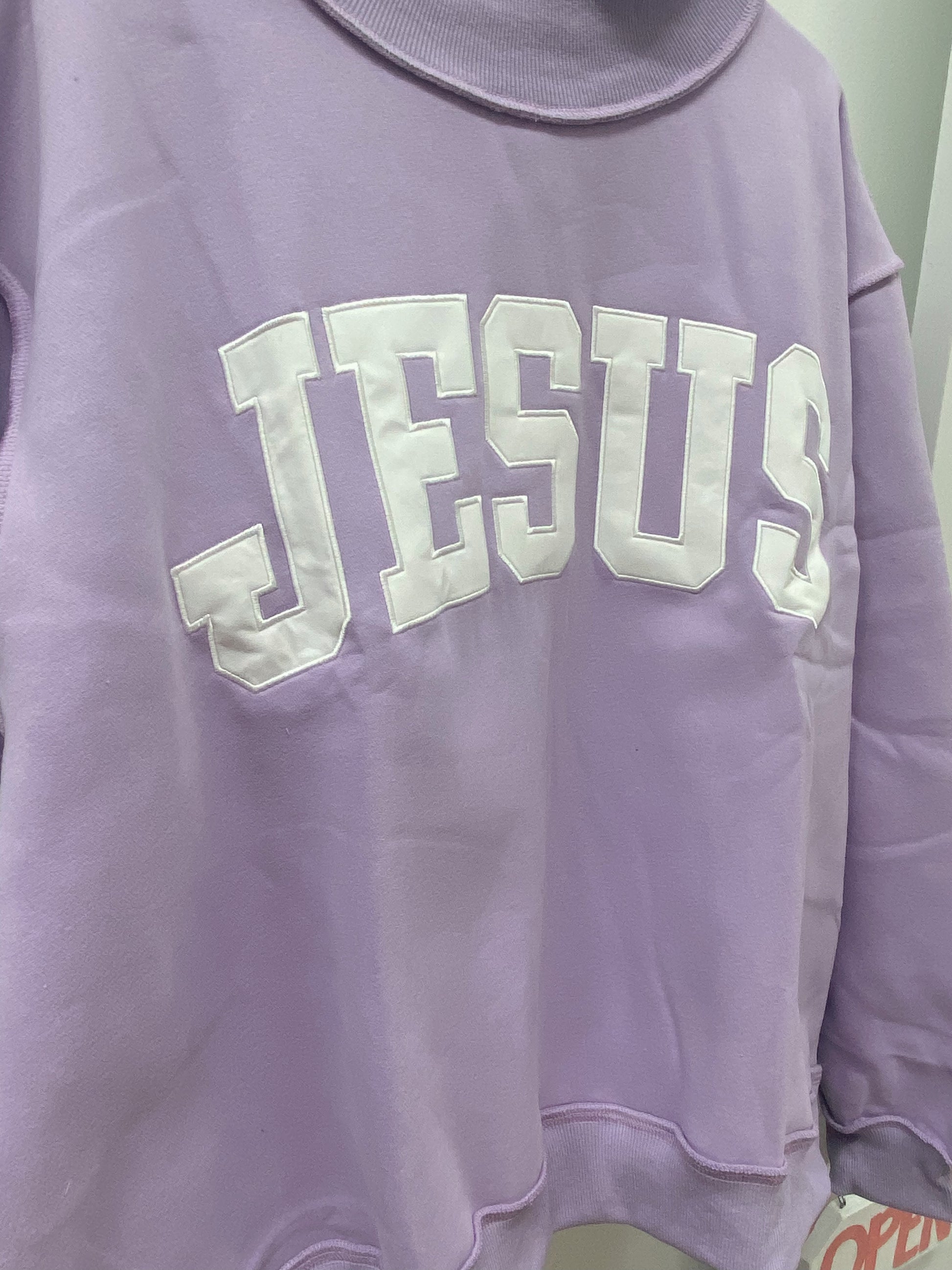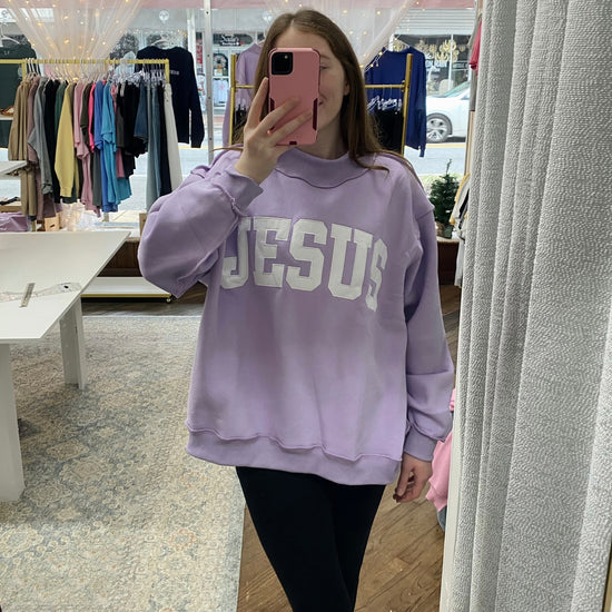 ‘JESUS’ Embroidered Mock Neck Sweatshirt - Lavender
